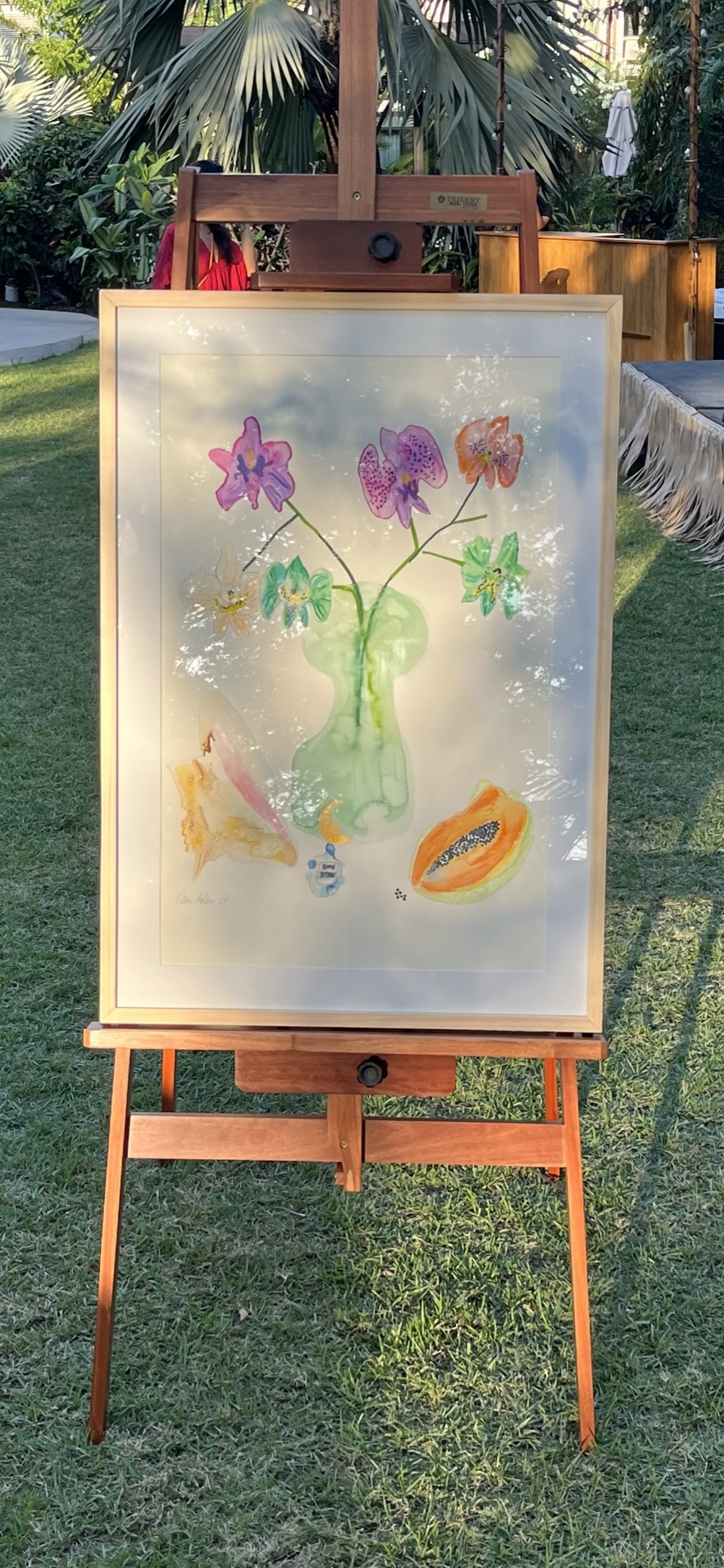 Among curiosity, astonishment, and detail, Ulloa’s oeuvre develops a visual conversation of attention. The gestures and sentiments produced by her works create a personal aura, as if we were inside Ulloa’s universe observing how each idea develops one step at a time. Her masterful craft of line and colors also creates a tension between figures, proving her unique skill of balance between chaos, aesthetic coherence, and elegance. Thus, her work offers a fresh and critical outlook over the mundane and modern life.